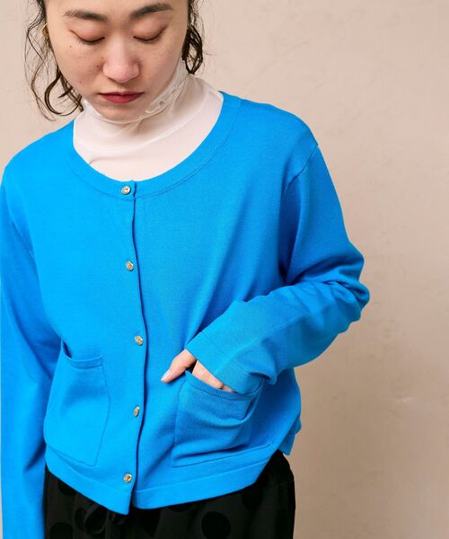 《WEB限定アイテム》 ノーカラーですっきり仕上げたシンプルなデザインにさりげないメタルボタンをポイントにしたクルーネックカーディガン。 コンパクトな丈感が今年らしくコーデが引き立ちます。 ポケット付きでさりげないアクセントも〇 シンプルながら丈やボタンデザインでさらっと着るだけでおしゃれ度UP。 一枚着はもちろん、羽織として着回しが効くアイテムです。 ※取り扱いについては、商品についている洗濯表示にてご確認下さい。 ※照明の関係により、実際よりも色味が違って見える場合があります またパソコン・スマートフォンなどの環境により、若干製品と画像のカラーが異なる場合もございます。 ※商品の色味は、商品アップ画像をご参照ください。 【注意事項】 ・画像の商品はサンプルです。 ・サイズ表記はあくまで目安となります。 実際の商品と仕様、加工が若干異なる場合があります。