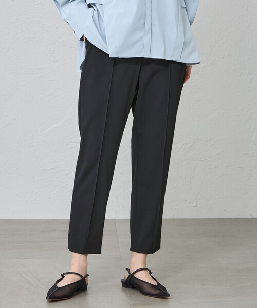 【CAST:キャストコロン 2026年春夏アイテム】【Design】CAST:で人気の定番素材ボディシェルを使用した美脚シルエットパンツ。CAST:の定番パンツです。センタ―ラインはピンタックが真っ直ぐ入っているので、細見え効果が抜群。後ろ部分は生地を切り替えているので、ぴったりフィットし過ぎず、細身でありながらもリラックスした履き心地を実現。【Fabric】CAST:では定番の、機能性を兼ね備えた素材「ボディシェル」を使用しています。さらっとしていて、透けにくく、シルエットをきれいに作り出すハリ・コシが特徴。ストレッチ性にも優れています。UV対策機能・はっ水機能もあるので、日常使いにぴったり。一年を通して着用頂けます。ホワイト(#01)カラーは防透け機能付きです。【Styling】カジュアルにもお仕事スタイルにも合わせやすいシルエット。豊富なカラー展開も魅力。足元がヒールでもフラットシューズでも合わせやすい丈に仕上げています。同素材のジャケット(N5E80701)とのセットアップもおススメです。透け感:なし伸縮性:あり生地の厚さ:普通おすすめ着用期間:春、夏、秋、冬※この商品はサンプルでの撮影を行っています。実際の商品とイメージ、サイズ、品質表示、原産国等が異なる場合がございます。※店頭及び屋外での撮影画像は、光の当たり具合で色味が違って見える場合があります。商品の色味は、スタジオ撮影の画像をご参照ください。