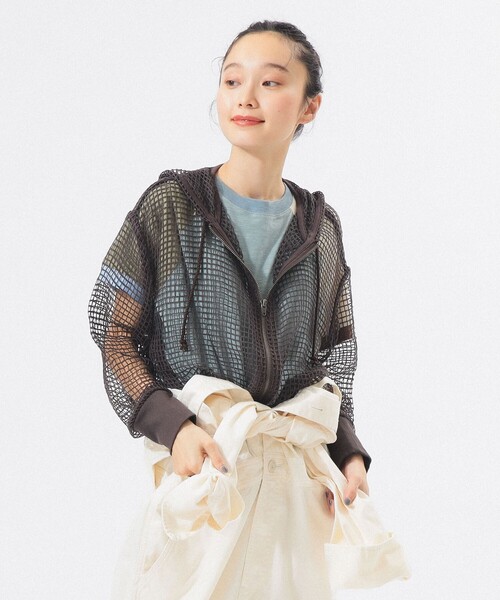 レイヤードを楽しむためのひと品■デザイン昨年大好評だったメッシュフーディーをアップデート。今回はパーカーをイメージし、軽やかに羽織れるデザインに仕上げました。生地もコットン100%の大きめな格子柄で、昨シーズンから大きく印象を変えました。袖口と裾口には柔らかなリブを施し、ルーズになりすぎず、程よくまとまりのあるシルエットを実現しています。■コーディネートレイヤードスタイルやコーディネートのアクセントとして活躍。Tシャツやタンクトップの上から羽織るだけで、スタイリングに抜け感と立体感をプラスします。■サイズ程よくゆとりを持たせたリラックスシルエット。レイヤードしやすく、着用時にだらしなく見えないバランス感にこだわりました。■素材ローゲージのラッセル編み機を使ったスクエアメッシュ素材。コットン100%ならではの柔らかな肌触りと、アイキャッチなデザイン性を兼ね備えています。■ケア方法洗濯可(詳細は商品についている品質表示ラベルをご覧ください)Model : H161 B76 W60 H82 Size : ONE SIZE※アイテムサイズは商品サンプルを採寸しているため、実際の商品と多少の誤差が生じる場合がございます。※画像の商品はサンプルのため、実際の商品と「仕様」「色合い」が異なる場合がございます。※予約販売の商品は、一部店舗で在庫がある場合がございます。