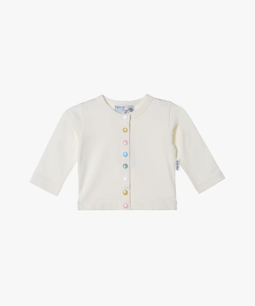 アニエスベー定番のカーディガンプレッション。 カラフルなボタン使いがポイントです。 カットソー素材なので春・夏・秋と着用できる期間が長く、1枚持っていると便利なアイテムです。 コットン天竺生地は特に他の素材に比べ、横方向への伸縮性に優れています。 横方向の伸縮性の高さは、洋服の着心地の快適性の良さに繋がり、日々の生活での動きをスムーズに、そして汗ばむ季節に着るカットソーや、インナーに快適性を生み出し、着け心地だけでなく着脱のしやすさにも関係するため、サッとスムーズな着脱が可能です。 また、素材が天然素材であれば吸汗や吸湿性に優れ、柔らかく優しい肌触りを感じることができます。 ※商品にアテンションカードや品質表示タグが付属している場合、必ずご確認の上、お取り扱いください。 <アニエスベーのカーディガンプレッション> 1979年当時、アニエスベーはよくスウェットシャツを着ていました。 ある時ふと、昔登校中にボタンを留めていたカーディガンみたいに前が開いたらいいな、と思いました。 そしてスナップボタンがルネッサンスの服や、神父服のように狭い間隔で並んでいるようデザインし、カーディガンプレッションが生まれました。 当初、カーディガンプレッションにはコットンのメルトン素材(裏起毛素材)が用いられ、直線的なカッティングに、丸襟で後ろに2つの調節用のタブがついていました。 その後、キッズとメンズラインでも展開。 また、メルトン素材をレザーに変えたり、半袖にしたり、ビスチェにしたり、ウエストを絞ったりと、絶えず進化させ続けてきました。 カーディガンプレッションは、独自的で時代を超えて愛されるアニエスベーの定番アイテムです。 原産国:中国 組成:綿100% 実寸情報 ~70cm(6ヶ月) 肩幅:22.5cm/バスト:50cm/袖丈:22cm/身丈:27cm 70~80cm(1歳) 肩幅:23.5cm/バスト:54cm/袖丈:24cm/身丈:29cm 80~85cm(18ヶ月) 肩幅:25cm/バスト:58cm/袖丈:27.5cm/身丈:31cm 85~95cm(2歳) 肩幅:25.5cm/バスト:62cm/袖丈:29cm/身丈:33cm (##)