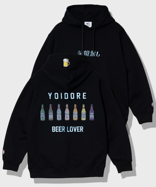 ☆YOIDORE☆ ビールで記憶無し スウェットパーカー YOIDORE/酔いどれの新作ウェットパーカー が登場。 胸元の「記憶なし」刺繍が、お酒でついやってしまう失敗をユーモラスに表現したスウェットパーカー。 ビールを飲みすぎた翌朝の“あの感じ”を思わせる、YOIDOREらしい遊び心あふれるデザインです。 程よい厚みのスウェット素材で着心地が良く、デイリーに活躍。笑いと共感を誘う、お酒好きにはたまらない一枚です。 ややゆったりめのルーズなシルエットは適度なリラックス感があり、 ラフな呑みシーンでのコーディネートに取り入れたいマストなアイテムです。 首元のサイズ表記も、M→ 中ジョッキと、L→ 大ジョッキ、XL→メガジョッキになっています。 ふざけているのに大人な仕上がり◎ 全ての商品にシーズン毎にデザインが変わる限定ステッカー付き。 ※着用、お取り扱いの際は、商品についている品質表示とアテンションタグを必ずご確認下さい。 【YOIDORE/酔いどれ】 酔いどれ( 酔っ払い) に届ける、酔いどれ( 酔っ払い) の為のブランド。 お酒をテーマにした様々なデザインを落とし込んで展開。 気鋭のアーティストや酒造メーカー、人気ショップとのコラボレーションや、 型にはまらない独特の世界感を表現した新感覚のアパレルブランドです。 老若男女お酒好きな方、お酒のお供にいかがでしょうか。
