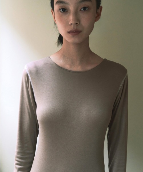 【コントラストステッチボディスーツ】 しなやかなストレッチ素材が、身体のラインに心地よくフィットするボディスーツ。 動きに合わせて伸縮するため、締め付け感なく美しいシルエットをキープします。 配色ステッチがアクセントとなり、シンプルながら視線を惹きつけるデザイン。 股下はボタン仕様でしっかり固定でき、トップスの裾がずれにくいのも嬉しいポイント。 レイヤードしてももたつかず、スタイリングをスマートに仕上げます。 袖先のステッチは、アウターからちらりと覗かせるだけでこなれた印象に。 程よく厚みのある生地感で、寒い季節のインナーとしても活躍。 darkpurple×blackステッチは、落ち着きのある大人かわいいムードを演出。 beige×whiteステッチは、ベーシックながら女性らしいラフさが魅力。 ワイドパンツと合わせれば、リラクシーでミニマルなスタイルが完成します。 black×whiteステッチはステッチをホワイトにすることで重たくなりすぎず、カジュアルなデニムと合わせてもクリーンな印象に。 #KTWR57 素材:指定外繊維(テンセル)95% ポリウレタン5% サイズ:F 丈:72cm ウエスト:61 ヒップ:72cm 袖丈:64cm 肩巾:36cm ー Attention ー ●着用の回数が増えると、毛玉(ピリング)が発生しやすくなります。 1日着用したら2日休ませるなどローテーションを考えて着用して下さい。 ●毛玉(ピリング)が発生した場合は、引っぱって取ろうと せずブラッシングするか、小さなハサミで1つ1つ取り除いて下さい。 ●着用中はバッグ・ベルト・アクセサリー等、表面の粗い ものとの摩擦、引っかけにご注意下さい。 ●型崩れを防ぐ為、洗濯後は平干しをして下さい。 また、ハンガーにかけておくと型崩れしますので、畳んで 保管して下さい。 ●濡れたまま長時間放置すると、色落ちの原因となることがありますので速やかに乾かすようにお願いいたします。 ※お届け予定時期は変更となる場合がございます。あらかじめご了承下さいませ。 ※商品のお色味は、お使いのバイスや撮影時の照明等により、実物と若干異なって見える場合がございます。 また、撮影ではサンプルを使用しておりますため、実物の商品と若干サイズ感や仕様が異なる場合がございます。 ※お取り扱いにつきましては、品質表示とアテンションタグを必ずご確認下さいませ。 【kiehtova -キエトバ-】 無駄のないミニマルな様式美をコンセプトに、 いつまでも美しく身につけられる実用性を追求したデザイン シンプルなコーディネートを格上げするこだわりのジュエリーなど 芯の強い女性のトータルコーディネートを提案します <H.O.V -フォブ-> WE'RE ON A MISSION OFMINDFUL CONSUMPTION あらゆるライフステージにおいて芯から必要とされるものをお届けすることが私たちのミッションと考えます。 身に付ければ心が満たされる様な美しいデザインとは何かを日々想像しています。 良い素材を選び熟練の職人技術を尊び慎重な生産を行っています。 そうすることで長く着用して 愛されるものを創り出し、購入後の商品のセカンドライフも提供したいと考えています。 ※【IRIS 47】【les bonbon】【quip queint】【kiehtova】を展開しているブランドです。