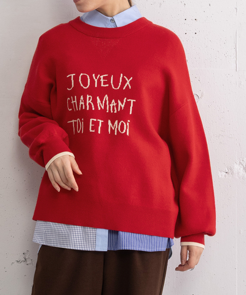 ■Pointフロントに手描き風のロゴデザインを施したトレンド感のあるニット。程よいオーバーサイズシルエットでリラックス感を持たせながら、リブの切り替えでメリハリをつけスッキリとした印象に仕上げています。汗止め見えするデザインを加え、スウェットのようなカジュアルさがあるアイテムです。■Stylingデニムやワイドパンツはもちろん、スカートに合わせても。インナーにシャツをレイヤードして、抜け感のあるコーディネートもおすすめです。--------------------透け感:なし厚さ:普通伸縮性:あり--------------------◆注意事項◆可能な限り実物に近いカラーにて掲載しておりますが、ご使用のパソコンやスマートフォンなどの端末の環境によって、実際の色味と異なって見える場合がございます。予めご了承ください。サンプルで撮影している商品もございます。その場合、実際の商品とは色味・仕様が異なる場合がございますので、予めご了承ください。POU DOU DOU プードゥドゥひと手間加えた存在感のある「日常着」いつまでもときめきとかわいいを忘れない方への愛着を持てるワードローブ= お気に入り登録がおすすめ!=お得な情報をいち早くお届け致します。アイテムをお気に入り⇒ SALE START / 完売COLOR再入荷 / LAST1点 etc...ブランドをお気に入り⇒新商品 / 再入荷 /クーポン・セール情報 etc...