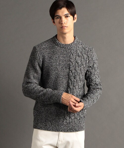 ミックスケーブル クルーネックニット ■素材 膨らみのある糸を4本弱く撚糸することで、より柔らかな風合いに仕上げたウールアクリル素材。 見た目よりも軽い仕上がりで保温性に優れており、暖かく着用できます。 優しくナチュラルな撚り杢カラーが特徴です。(29/グレーのみ) ■デザイン ナチュラルなローゲージのクルーネックニット。 細かいリンクス柄に立体的なケーブル編みが引き立つアシンメトリーなデザイン。 ローゲージ特有のボリューム感が見た目にも暖かく、程よく抜け感のある着こなしになります。 透け感:なし 伸縮性:あり 生地の厚さ:厚手 裏地:なし ※画像の商品はサンプルです。実際の商品とは仕様・加工・サイズ・素材が若干異なる場合がございます。 ※照明の関係により、実際よりも色味が違って見える場合があります。 またパソコン・スマートフォンなどの環境により、実際の商品と色味に若干の誤差が生じる場合があります。 予めご了承ください。