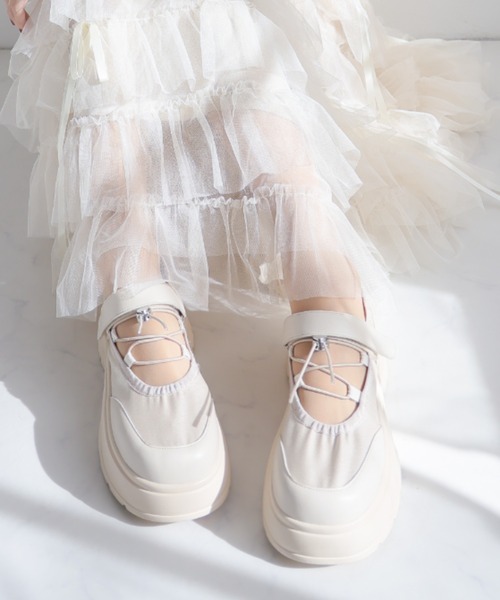 2026年春新作ZOZOTOWN+オフィシャルサイト限定商品ゴムレースアップとさりげないシャーリングデザインがポイントのメリージェーンスニーカー!コードにアジャスターのメタルパーツがアクセントラメサテンとギャザーディテールでガーリーさをプラス旬のボリュームソールは履くだけでスタイルアップが叶う!どことなくレトロ雰囲気が漂うフォルムは、マニッシュコーデにはもちろん、ガーリーコーデや甘辛MIX、トレンドのスポーツミックススタイルや韓国コーデとの相性も◎デニムやソックス合わせもサマになる!見た目より軽くて安定感があって歩きやすいのもうれしいポイント。◇履きやすさのポイント◇・足が痛くなりにくく疲れにくい低反発クッションインソール・体重をサポートしてくれる厚底は安定感があって歩きやすい!・見た目よりも軽くて足が疲れにくい・アジャスター付きゴムレースアップとマジックテープで足に合わせて調整できて適度なホールド感・ベルクロデザインで脱ぎ履きラクチン< サイズ詳細> ■S (22.0-22.5cm)■長さ:22.8cm/ワイズ:21.3cm/幅:7.8cm/ヒール高さ:6.3cm■M (23.0-23.5cm)■長さ:23.8cm/ワイズ:22.0cm/幅:7.9cm/ヒール高さ:6.3cm■L (24.0-24.5cm)■長さ:24.8cm/ワイズ:22.7cm/幅:8.0cm/ヒール高さ:6.3cm■LL (25.0cm)■長さ:25.3cm/ワイズ:23.0cm/幅:8.1cm/ヒール高さ:6.3cm※サイズスペックについては、VivianCollection独自の方法により採寸しております。※()の中が足の対応サイズとなり、長さは靴の長さを表示しています。※靴の長さとは、靴のつま先から靴の踵の長さを表記しております。プチプラシューズ専門店「VIVIAN COLLECTION」 ▼お気に入り登録をおすすめします▼ ♡をクリックしてお得なセール情報や、再入荷情報、ラスト1点の通知など、お買い得情報をいち早く受ける事ができます。ブランド【VIVIAN COLLECTION】のお気に入り登録も一緒に追加するとお得なニュースを配信しております♪