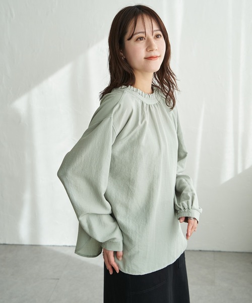 顔まわりを華やかに見せてくれる、襟元フリルのブラウス。前後どちらを前にしても着られる2WAYデザインのため、印象を変えながら楽しんでいただけます。【素材】凹凸感のある表面が特徴的。薄く軽やかでさらりとした手触り。【デザイン】定番の襟フリルデザインブラウス。襟に共地リボンを付け、よりフェミニンな印象です。【ikkaポイント】・定番の襟フリルブラウスは、前後入れ替えてもより着やすいようにサイズ調整しました・前立て側の台襟に共地紐をつけリボンアレンジができるようになりました。レイヤードのアクセントに◎[洗濯方法]洗濯の際はネットを使用してください