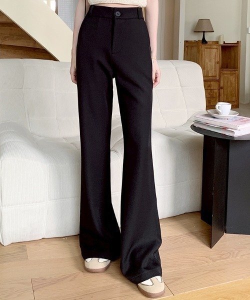 -おすすめポイント♪-ハイウエスト仕様と裾に向かって広がるセミフレアシルエットで、脚をすらっと長く見せてくれるスラックス♡後ろウエストのみゴム仕様になっているので、きれい見えしながらも楽なはき心地を叶えますベルトループ付きで、ブラック・ブラウン・グレージュの3色展開と着回し力も抜群です!ポリエステル100%素材を使用し、落ち感があり上品な印象に仕上げていますシワになりにくく、デイリーからお出かけまで幅広く活躍します◎ショート丈トップスやタックインで、ハイウエストを活かしたスタイルアップコーデがおすすめです☆スウェットやオーバーサイズトップスと合わせれば、抜け感のある大人カジュアルにもハマります!-お買い物をお楽しみいただくために-◆Instagram◆lacvert_official新作情報やルックを配信中◆この商品が気になったらお気に入り登録完売カラーの再入荷通知やセール情報、ラス1情報などの通知を受け取ることができます♪◆LAC VERTをお気に入りブランドに登録新商品や入荷情報を受け取ることができるので、いち早く新作をチェックできます!是非ご登録してくださいね♪※撮影時のライティング、ご覧になっているモニター・PC環境により、実際の商品と色味が異なって見える場合がございます。予めご了承下さいませ。韓国 韓国ファッション 韓国風 きれいめ シンプル 大人 オフィス 結婚式 二次会 オフィスカジュアル 春 夏 韓国通販 かわいい 可愛い おしゃれ オシャレ プチプラ トレンド 量産型 通勤 通学 ペアルック プチプラ 大人かわいい ワントーン ニュアンス 骨格ウェーブ スラックス パンツ 大人カジュアル きれいめカジュアル フレア 美脚 細見え