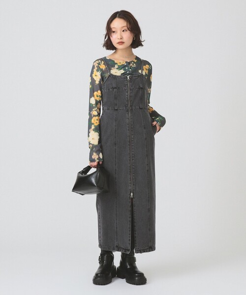 ジップで着こなしに抜け感をプラス ■デザイン ジップデザインが目を引く、ストレートシルエットのデニムキャミワンピース。 生地に加工を施すことで、長年着込んだような奥深いヴィンテージ感を表現しました。フロントはダブルジップ仕様になっており、スカート部分のスリットの深さをその日の気分に合わせて調整できるのが魅力。 ■コーディネート タンクトップやタートルネックニットなど、インナー次第でシーズンレスに着回しが可能。ジップを大胆に開けて、中に柄物のパンツやロングブーツを覗かせるエッジの効いたレイヤードスタイルもおすすめです。 ■サイズ タイトなシルエットながら、後ろウエストにゴムを配することで、ストレスフリーな着心地とフィット感を両立させました。 ■素材 しっかりとした肉感がありながらも、肌馴染みの良いデニム素材を使用。バイオウォッシュ加工特有の柔らかな質感により、デニム特有のごわつきを抑えた心地よい肌触りに仕上げています。 ■ケア方法 洗濯可(詳細は商品についている品質表示ラベルをご覧ください) ・加工のため一点一点に微尿な色・サイズ・風合いなどの違いがあります。 ・濃色品は他の物へ色が移ることがあります。 ・加工によるほつれ、糸切れ、加工時の粒子(砂粒)の混入が見られる場合があります。 ・摩擦や汗、水等により色移りすることがあります。淡色との組み合わせにご注意ください。 ・商品は濡れた状態で他の洗濯物と一緒に重ねないでください。