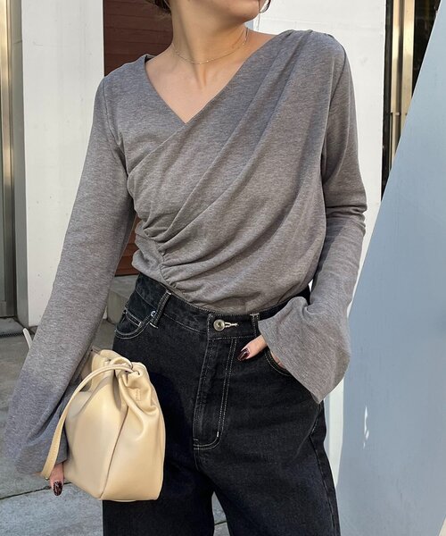 ドレープのディテールが女性らしい着映えロンT商品ポイント・アシンメトリーのVネックが一癖ある抜け感をプラス・すっきりとしたシルエットでジャケットのインナーにもおすすめ・脇にギャザーが入っておりアウトスタイルも◎・フレアスリーブで手元もこなれた印象に・落ち感のある滑らかなカットソー素材で着心地も抜群スタイリングポイント・ワイドパンツに合わせてメリハリのあるスタイリングに・ジャケットのインナーにもおすすめ【ホワイト着用アイテム①】スリットポケットストレートデニム【ホワイト着用アイテム②】2タックワイドパンツ【グレー着用アイテム①】13ozハイウエストストレートデニム【グレー着用アイテム②】2タックワイドパンツ【ベージュ着用アイテム】2タックワイドパンツ**********************透け感:なし裏地:なし伸縮性:あり光沢感:なし**********************▼洗濯方法液温は30℃を限度とし、洗濯機で非常に弱い洗濯ができる※撮影場所やお使いのモニター環境により若干お色味が異なる場合がございます。特にロケの撮影では明るく見える傾向にございます。※商品はサンプルで撮影をしております。若干の仕様が変更になる場合がございますので予めご了承の上ご注文くださいますようお願いいたします。▼商品のお気に入り登録完売カラーの再入荷通知や、ラスト1点の通知、セールの通知も受け取ることができます。▼ブランドのお気に入り登録新商品や再入荷など、いち早くブランドのお得な情報を受け取ることができます。