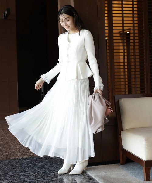 軽やかな素材感で仕上げた春らしい表情のジャンスカワンピース。 すっきりとした上身頃と揺れ感のあるスカートが、自然な立体感を演出します。 カットソーでカジュアルに、ブラウスを合わせてきれいめにも着回せる一枚です。 インナー次第で印象を変えられ、ロングシーズン着回しやすいのも魅力。 【ご注意】 ※撮影照明の関係により、実際の商品と色味が異なって見える場合がございます。 また、パソコン・スマートフォンなどの環境により、製品と画像のカラーが異なる場合もございます。 予めご了承ください。 ※商品画像はサンプルのため、色味やサイズ等の仕様に変更がある場合がございますので、予めご了承ください。