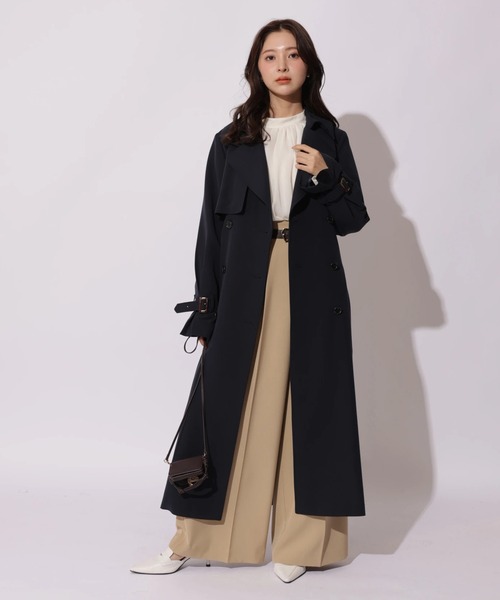 歩くたびに揺れるサイドプリーツが、軽やかな表情を添えるトレンチコート。程よく落ち感のある素材で、羽織るだけで縦ラインを美しく演出します。ワンピースに重ねて上品に、パンツスタイルでシャープにまとめる着こなしもおすすめ。【ご注意】※撮影照明の関係により、実際の商品と色味が異なって見える場合がございます。また、パソコン・スマートフォンなどの環境により、製品と画像のカラーが異なる場合もございます。予めご了承ください。※商品画像はサンプルのため、色味やサイズ等の仕様に変更がある場合がございますので、予めご了承ください。