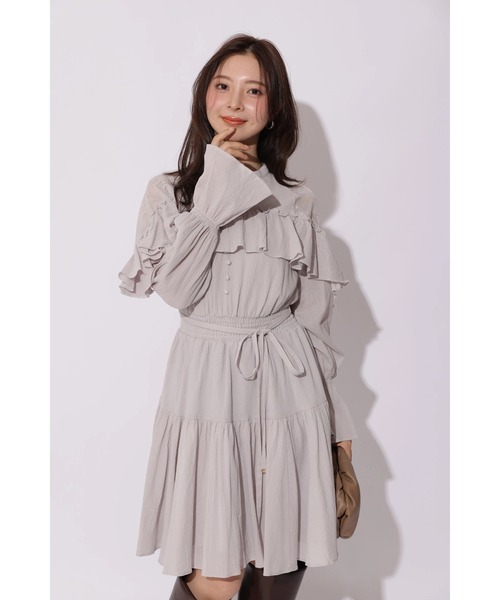 楊柳コットンの柔らかな風合いが、軽やかな表情を引き立てるミニワンピース。 フリルとティアード切替で立体感を出しつつ、ウエストリボンですっきり見えを叶えます。 ショートブーツで旬顔に、フラットシューズを合わせて甘さを抑えた着こなしもおすすめ。 【ご注意】 ※撮影照明の関係により、実際の商品と色味が異なって見える場合がございます。 また、パソコン・スマートフォンなどの環境により、製品と画像のカラーが異なる場合もございます。 予めご了承ください。 ※商品画像はサンプルのため、色味やサイズ等の仕様に変更がある場合がございますので、予めご了承ください。
