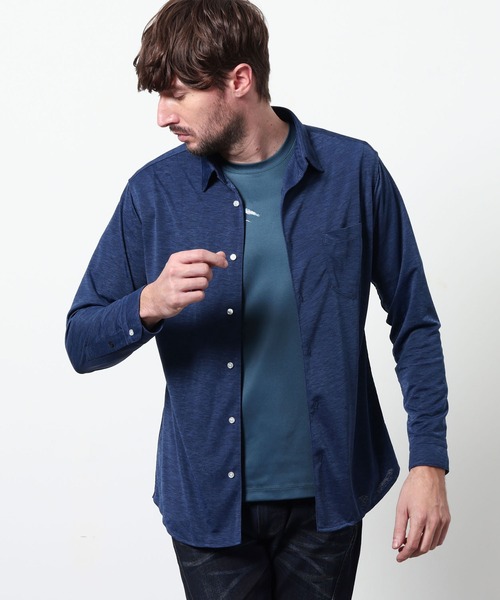 ■デザイン衿先にワイヤ-を仕込んだショートレギュラーカラ-シャツ。ヨーク裏に裏地を使いアクセントになる様にしています。■サイズややゆったり目のサイズ設定。ウエスト部分にシェイプを入れる事でシャープなシルエットに仕上げています。■素材2種類のポリエステル糸を使用して染めることによって染色差で独特なメランジ感を出したジャカードのカットソー素材を使用。少し透け感のあるシアーな見え方で、トロっとした落ち感がありながら、シャリっとした肌触りが気持ちいい素材です。ポリエステル100%ですので、洗濯してもシワになりにくく、すぐに乾くイージーケア性も魅力。カットソー素材ですのでストレッチもあり、体の動きに沿ったストレスフリーな着心地を提供してくれます。伸縮性:あり生地の厚さ:薄手裏地:なし■注意点衿端に付属としてプラスティック線材を使用しています。局部的に繰り返し折り曲げたり、その部分にアイロンをあてないで下さい。摩擦によりピリングが起こることがあります。※画像の商品はサンプルです。 実際の商品とは仕様・加工・サイズ・素材が若干異なる場合がございます。※掲載画像の商品の色味は、撮影場所や光の当たり具合などにより色味が異なって見える場合がございます。 商品の色味は、生地アップの画像をご参照ください。 また、お客様のお使いのPC・スマートフォン等のモニター環境などにより色味が異なって見える場合がございます。 予めご了承の上ご注文ください。※着用モデル身長182cm B89cm W75cm H90cm 着用サイズ48