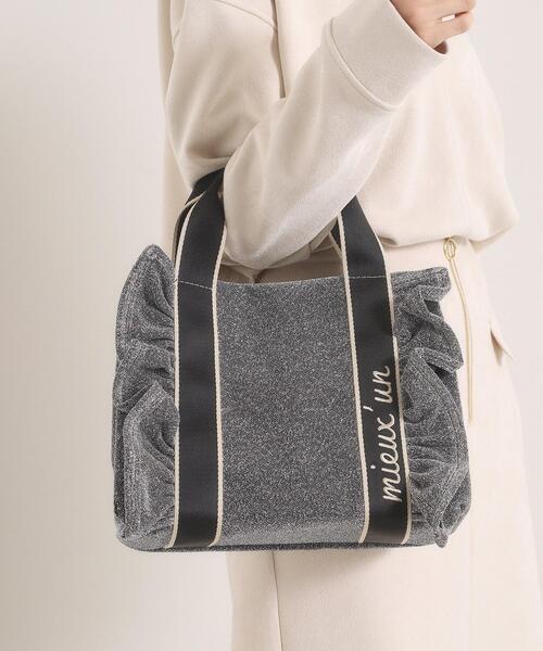 【デザイン】ふんわりとしたフリルをサイドにあしらい、カジュアルながらフェミニンな印象のミニトート。キラッと華やかなシルバー、ブラックと、落ち着いたベージュ、ピンクの4色展開。毎日使いたくなる「ちょっと嬉しい」デザインで、色違いで揃えたくなるフリルテープトートです。【機能性】マチ付き収納力を確保。ポケットもあり、小物の仕分けがスムーズ。普段使いからちょっとしたお出かけまで幅広く活躍します。*ポケット数×2※照明の関係により、実際よりも色味が違って見える場合があります。また、パソコン・スマートフォンなどの環境により、若干製品と画像のカラーが異なる場合もございます。----------------------------------------★お気に入り登録がおすすめ★▽気になる商品はハートマークをクリック!・再入荷やセールの通知をお知らせ・お気に入り一覧からいつでもチェック▽ブランドのお気に入り登録も!・新商品やお得な情報をいち早くお知らせ----------------------------------------店舗へのお問い合わせ商品番号:P93-75005●製品寸法:00(フリーサイズ):高さ22cm 幅(上部)26.5cm 幅(下部)28cm マチ13.5cm 持ち手上がり10cm備考:重量:約290g