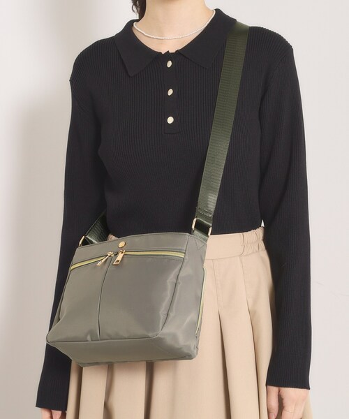 【デザイン】 大人気、収納アドバイザー監修のショルダーバッグ。 コンパクト見えなのに頼れるフォルム。 ゴールド金具が上品なアクセントでカジュアル~きれいめまでマッチします。 長さ調節OKのショルダーストラップで肩掛けも斜め掛けもスマートに。 ダブルジップ&仕切りで小分け管理がしやすく、通勤・お買い物・おでかけまで幅広く活躍します。 「見つけやすく、使いやすい」毎日を叶えるアイテムです。 【機能性】 収納の「定位置化」で迷子ゼロ! 裏地と色を変えた指定席ポケットで、毎回しまう場所が決まるから取り出しがラク♪ メッシュポケットは中身が見やすく、リップなど小物の取り出しもスムーズです。 キーループ付きで鍵の紛失対策もばっちり。 撥水加工生地で急な雨も安心のデイリーユース仕様です。 *ポケット数×10 ※照明の関係により、実際よりも色味が違って見える場合があります。また、パソコン・スマートフォンなどの環境により、若干製品と画像のカラーが異なる場合もございます。 ---------------------------------------- ★お気に入り登録がおすすめ★ ▽気になる商品はハートマークをクリック! ・再入荷やセールの通知をお知らせ ・お気に入り一覧からいつでもチェック ▽ブランドのお気に入り登録も! ・新商品やお得な情報をいち早くお知らせ ---------------------------------------- 店舗へのお問い合わせ商品番号:P93-75013 ●製品寸法: 00(フリーサイズ):高さ18cm 幅(上部)25cm 幅(下部)23.5cm マチ9cm ショルダー対応サイズ67.5~128cm 備考:重量:約270g