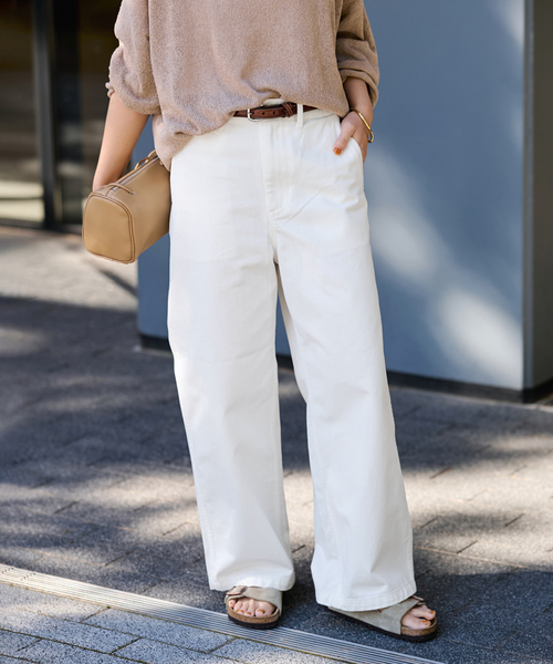 しっかりとしたチノ素材に製品加工を施し、ヴィンテージ感とこなれた雰囲気を演出した一本。ベージュカラーは硫化染めならではの自然なフェード感が魅力。オーセンティックなディテールを残しつつ、ややゆとりを持たせたサイズ感で抜け感のあるスタイルに仕上げました。カジュアルからきれいめまで幅広く合わせやすい、万能なチノパンツです。**********************透け感:なし裏地:なし伸縮性:なし光沢感:なし生地の厚さ:普通**********************※カラーによりアテンションが異なります。ベージュ(027):1枚1枚加工しているため、色や形にそれぞれ差があります。日光や蛍光灯の光に弱く、色あせ(変色)しやすい性質があるので、長時間の直射日光は避けてください。洗濯の繰り返しで徐々に色落ち(色あせ)し、全体的に白っぽくなります。摩擦によって他のものに色移りすることがあります。*部分的に擦れると、脱色することがありますので、もみ洗いしないで下さい。※取り扱いについては、商品についている品質表示でご確認ください。※こちらの商品は、FRAMeWORK での取り扱いになります。直接店舗へお問い合わせの際は FRAMeWORK 店舗へお願い致します。※照明の関係により、実際よりも色味が違って見える場合があります。またパソコン・スマートフォンなどの環境により、若干製品と画像のカラーが異なる場合もございます。予めご了承の上ご注文ください。※商品の色味は、商品アップ画像をご参照ください。本体:手洗い可能