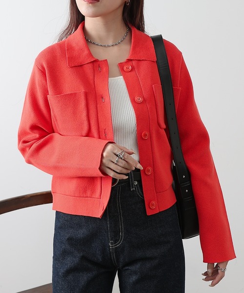 【きちんと見えが叶う 大人のニットジャケット】柔らかなニット素材を使用しジャケットのきちんと感とカーディガンの着心地を両立したニットジャケットです。羽織るだけでスタイルが整いカジュアルからきれいめまで幅広いコーディネートに対応する万能アイテム。胸元の大きめなポケットや、大きめのボタンがアクセントになっています。サイズ感がコンパクトなので着膨れ感もなく、目線が上に行くことでスタイルアップ効果も抜群◎トップスとしても、羽織りとしても大活躍の季節の変わり目に重宝する万能アイテムです。【商品ポイント】・トップスとしても、羽織りとしてもオススメ・様々なアイテムと相性抜群・ニットならではの柔らかな着心地・コンパクトなシルエットで脚長効果◎・;大きめポケットがアクセントに----------------------------------------------------■商品特徴洗 濯 方 法 :手洗い可裏 地 :なし透 け 感 :なし伸 縮 性 :なし光 沢 感 :なし生地の厚さ:普通----------------------------------------------------■素材綿100%----------------------------------------------------※着用、お取り扱いの際は、商品についている品質表示とアテンションタグを必ずご確認下さい。※商品タグに記載されている商品名がWEBでの表記名と異なる場合があります。※実際の商品と仕様、加工、サイズが若干異なる場合がございます。※照明の関係により、実際よりもやや明るく見える場合がございます。またパソコンなどの環境により、若干製品と画像のカラーが異なる場合もございます。予めご了承くださいませ。【お気に入り登録】してお得な情報をCHECK!!・「商品のお気に入り登録」で再入荷通知や、ラストの通知、セール通知も受け取ることができます。・「ブランドのお気に入り登録」で新商品や再入荷など、お得な情報を受け取ることができます。
