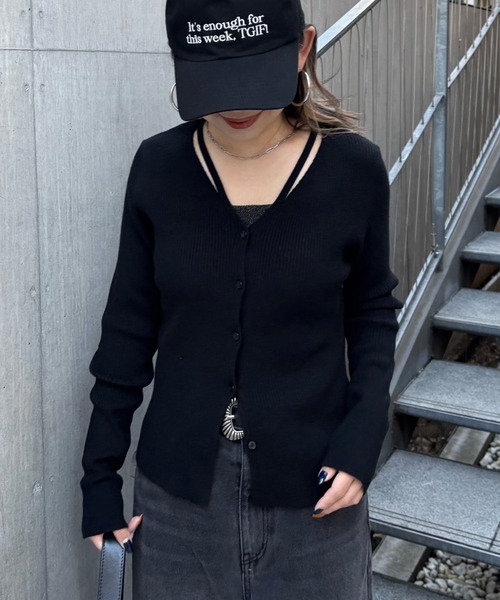 【着痩せ×着映えが同時に叶うVネックニットカーディガン】レイヤード風の紐デザインが周りと差をつけられる着映えニットカーディガン。シャープなVネックが顔まわりをすっきりと見せ、女性らしい雰囲気と程よい抜け感を演出します。体のラインに沿うフィット感なので、ボトムスにはワイドパンツやフレアスカートを合わせるとメリハリのあるシルエットに。腰回りが気になる方やストレスフリーな着心地を求める方にも、自然なスタイルアップ効果が期待できます◎ウエストから裾にかけてフレアに広がるAラインシルエットが、着痩せも叶えてくれます。裾のボタンを開けるとさらにふんわりと広がり、着こなしの幅が広がるのも魅力のひとつ。また、細かい縦リブが視覚的に引き締め効果をもたらし、すっきりと見せてくれます。フィット感のあるデザインなので、薄手のインナーなら羽織りとしてもお使いいただけます◎また、すっきりとしたシルエットを活かしてタックインスタイルにもおすすめです。デニムでカジュアルに、スラックスやスカートと合わせて通勤やきれいめコーデにも対応でき、季節の変わり目に重宝する一着です。【商品ポイント】・レイヤード風の紐デザインでコーデのアクセントに◎・程よいフィット感で細見え効果大・Vネックで顔周りすっきり見え----------------------------------------------------■商品特徴洗 濯 方 法 :手洗い可裏 地 :なし透 け 感 :なし伸 縮 性 :あり光 沢 感 :なし生地の厚さ:普通----------------------------------------------------■素材レーヨン50%, ポリエステル30%, ナイロン20%----------------------------------------------------※着用、お取り扱いの際は、商品についている品質表示とアテンションタグを必ずご確認下さい。※商品タグに記載されている商品名がWEBでの表記名と異なる場合があります。※実際の商品と仕様、加工、サイズが若干異なる場合がございます。※照明の関係により、実際よりもやや明るく見える場合がございます。またパソコンなどの環境により、若干製品と画像のカラーが異なる場合もございます。予めご了承くださいませ。【お気に入り登録】してお得な情報をCHECK!!・「商品のお気に入り登録」で再入荷通知や、ラストの通知、セール通知も受け取ることができます。・「ブランドのお気に入り登録」で新商品や再入荷など、お得な情報を受け取ることができます。