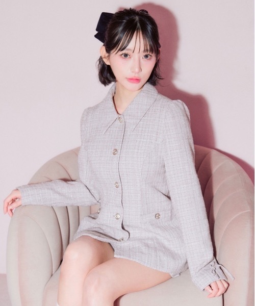 きちんと見えなのに、ちゃんと可愛いペプラムトップス■デザイン・360度どこから見てもきれいなペプラムシルエットで、自然に細見えが叶う一枚。・ラメを織り込んだツイード素材で、顔周りを明るく華やかに見せてくれます。・フロントの金ボタンがクラシカルで、高見えするアクセントです。・袖口にあしらわれたリボンが、さりげなく女の子らしさを引き立てます。■カラー・ピンク/チェックの2色展開■スタイリング・スッキリショーパン(商品番号:1061020030)とセットアップで着るのがおすすめ。・フレアパンツなどカジュアルなアイテムと合わせることで、こなれ感のある着こなしに。-----------------------------裏地:あり光沢感:あり透け感:なし伸縮性:なし手洗い:不可タンブラー乾燥:不可アイロン:110℃まで-----------------------------model:160cm※着用、お取り扱いの際は、商品についている品質表示とアテンションタグを必ずご確認下さい。※ご覧のモニター環境や撮影環境により実際の商品と多少色味が異なって見える場合がございます。ご理解の程よろしくお願いいたします。※引っかけ注意・粗い組織のものや、表面に凹凸があってルーズな組織のもの表面に糸が浮き出ているものは、ちょっとした不注意から引っかけてしまいがちです。取り扱いの際は取り扱い絵表示確認の上、十分注意してください。・着用時にベルトや、バックや周囲の壁など表面の粗いものとの摩擦や引っかかりに注意してください。・水洗いやクリーニングの際にも他の物ものとの引っかかりに注意して下さい。■お気に入り登録のおすすめ【気になるアイテムを登録】ハートをクリックしてお気に入りに登録すると完売カラーの再入荷やラスト1点の通知、セールの通知を受けとることができます。【ブランドを登録】新商品や再入荷、セール通知など、いち早くブランドの情報を受けとることができます。