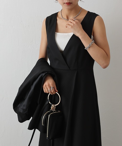 【品よく着映える カシュクールノースリーブワンピース】胸元のカシュクールデザインが女性らしい抜け感と上品さを演出するノースリーブワンピースです。程よく開いたネックラインがデコルテをきれいに見せすっきりとしたシルエットに。一枚でさらりと着るのはもちろん、カーディガンやジャケットを羽織ればきちんと感のあるスタイリングにも対応。ポケットも両サイドに1つずつついているので機能性も抜群なのも嬉しいポイントです◎同素材のアイテムとセットアップスタイルもオススメです。【商品ポイント】・セットアップ可能・女性らしさを引き立てるカシュクールデザイン・羽織り次第でオン・オフ対応【同素材シリーズ】・CWA1061102A0001 美脚2タックワイドパンツ・CWA1061102A0002 美脚センタープレステーパードパンツ・CWA1061107A0012 クロップドWテーラードジャケット・CWA1061107A0013 Wテーラードジャケット----------------------------------------------------■商品特徴洗 濯 方 法 :手洗い可裏 地 :あり(上半身のみ)透 け 感 :なし伸 縮 性 :なし光 沢 感 :なし生地の厚さ:普通----------------------------------------------------■素材表地: ポリエステル97%, ポリウレタン3%裏地: ポリエステル100%----------------------------------------------------※着用、お取り扱いの際は、商品についている品質表示とアテンションタグを必ずご確認下さい。※商品タグに記載されている商品名がWEBでの表記名と異なる場合があります。※実際の商品と仕様、加工、サイズが若干異なる場合がございます。※照明の関係により、実際よりもやや明るく見える場合がございます。またパソコンなどの環境により、若干製品と画像のカラーが異なる場合もございます。予めご了承くださいませ。【お気に入り登録】してお得な情報をCHECK!!・「商品のお気に入り登録」で再入荷通知や、ラストの通知、セール通知も受け取ることができます。・「ブランドのお気に入り登録」で新商品や再入荷など、お得な情報を受け取ることができます。