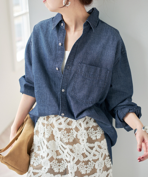軽やかに着こなす、大人のシャンブレーシャツ。 繊細なスラブ感のあるシャンブレー素材を使用し、カジュアルすぎない大人のデニムシャツに仕上げました。 ニットやジャケットのインにも着込みやすいサイズ感で、寒い時期からロングシーズン活躍。 さりげなく施した塗装釦とメタル釦が、シンプルな中に程よいアクセントを添えます。 一枚着としてはもちろん、レイヤードスタイルにも取り入れやすい、着回し力の高いシャツです。 ※アテンション 【色落ち】【色ムラ加工】はサックスブルー Bのみに該当します。 摩擦、濡れによる色移りに気をつけてください。 この製品は、加工により独特の素材感を持たせています。 【特殊加工 】はブルー Aのみに該当します。 この製品はナチュラルな風合いをお楽しみいただけるよう、特殊な加工を施しています。 そのため、一点一点に微妙な色、サイズ、風合いなどの違いがあります。 ※下げ札(タグ)カラー名表示について サックスブルーをご注文の場合でも、 ブルーの属性にあたる為、タグ表示はブルーと記載されております。 「COL 049 ブルー」の表示は間違いではございません。 044ブルー=ブルーA 049ブルー=サックスブルー B ※取り扱いについては、商品についている品質表示でご確認ください。 ※こちらの商品は、Spick & Spanでの取り扱いになります。 直接店舗へお問い合わせの際は Spick & Span店舗へお願い致します。 ※照明の関係により、実際よりも色味が違って見える場合があります。 またパソコン・スマートフォンなどの環境により、若干製品と画像のカラーが異なる場合もございます。 ※商品の色味は、商品アップ画像をご参照ください。 本体:洗濯機洗い(弱)