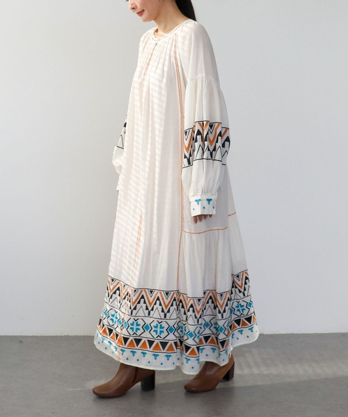繊細な刺繍が映えるコットンレーヨン素材のロングワンピース綿×レーヨンの軽やかな生地感で、動くたびに柔らかな表情を演出します。袖や裾にあしらわれた刺繍が、シンプルな中に程よいアクセントをプラス。カラーは清潔感のあるエクリュ、爽やかなミント、シックなネイビーの3色展開。ゆったりとしたシルエットで、リラックス感がありながらも上品な印象に。--------------------------------------透け感:あり裏地:なし伸縮性:なしケア方法:手洗い可※お洗濯の際は洗濯表示を必ずご確認ください。--------------------------------------