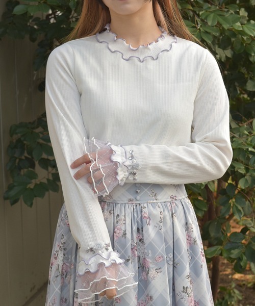 【アイテム説明】【商品紹介】大人気!配色メロープルオーバーが春カラーになって登場!袖口を華やかに彩るキラッしたチェック柄のラメチュールフリルがポイントのメロープルオーバーです。伸縮性の良いリブ生地で着やすさ◎。かぶって着られる便利なアイテムです。【デザイン】配色・微配色のくりんとした伸ばしメロー使いがポイント。袖口はフリル+ラメチュールフリルでふわっと広がるシルエット。春らしく透け感と花咲く季節感を表現したオーガンジーフラワーと、キラッとした印象になるようにラメ入りビジュー等、ブレスレットのようにパールやビジューを華やかにあしらっています。それぞれのボディカラーに合わせてパール・ビジューもそれぞれ染め分けたこだわりの詰まったデザインです。シルバーラメの綺麗なチェック柄チュールが2枚重なることで、立体感と華やかさをプラスしています。【コーディネート】気分も明るくなるような、明るいパステルカラーのラインナップで、春らしいカラーコーデにオススメ。すっきりしたトップスやコーデがお好きな方の大人の推し活にもぴったり◎。ボトムスを選ばずパンツ・スカートどちらも合わせやすく、さらにジャンスカやキャミワンピのインナー使いもできるため、1枚持っているだけで使い勝手の良い、色違いでほしくなる便利なアイテムです。▽ axes femme * アクシーズファム【Concept】axes femmeのお洋服であなたのライフスタイルにほんの少しだけ彩る花が咲きますように。ブランドを通して、彩る花たちが、人と人、お客様や作り手たちの想いが世界中に繋がっていきますように。ベル・エポック(フランスの古き良き時代)にパリジェンヌたちが愛したファッションや文化にルーツをおき、独自のフェミニンスタイルを楽しむブランド**********************.。.: お気に入り登録のおすすめ :.。.∇気になるアイテムを登録∇ハートをクリックしてお気に入りに登録すると完売カラーの再入荷やラスト1点の通知、セールの通知を受けとることができます。∇ブランドを登録∇新商品や再入荷、セール通知など、いち早くブランドの情報を受けとることができます。是非ご利用頂き、お買い物をお楽しみ下さい。.。.: 商品について :.。.・サイト上のカラー名と、お届け商品に記載されているカラー名が異なる場合がございます。・商品の色味は、撮影場所や光のあたり具合、お客様のお使いのPCのモニター環境などにより色味が違って見える場合がございます。予めご了承の上ご注文下さい。.。.: 返品・キャンセルについて :.。.・着用、洗濯後の返品は致かねます。・商品到着後、着用前に商品を確認して頂きますようお願い致します。