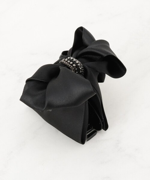上品なリボンをボリューム感たっぷりに結び、中央にメタル+ラインストーンのリングをあしらったデザイン。クリップ本体はバンス仕様で髪をしっかりホールドしつつ、リボンの柔らかなフォルムが顔まわりに女性らしいアクセントを添えます。ベーシックカラーでフォーマルにもデイリーにも馴染む仕立てです。※照明の関係により、実際よりも色味が違って見える場合があります。また、パソコン・スマートフォンなどの環境により、若干製品と画像のカラーが異なる場合もございます。店舗へのお問い合わせ商品番号:C70-85400●製品寸法:00:H4.5cm W6cm D3cm モチーフH6.5cm モチーフW10cm備考: