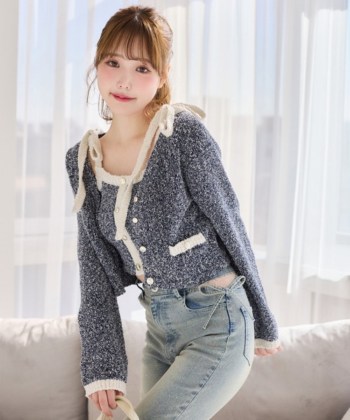 ~NICECLAUP 2026 Early Spring Collection~ラメ糸を使用しているため、キラキラとした華やかさが魅力のカーディガン。フロントのゴールドボタンが、コーディネートのアクセントになります。着丈はクロップド丈で、ミニボトムはもちろん、ロングボトムとも好相性。■おすすめコーディネート品番:0161050110のビスチェとのアンサンブルがおすすめ!ハイウエストデニムと合わせて、韓国風の大人コーデに。ミニスカートと合わせて、ガーリーな雰囲気に◎マーメイドスカートと組み合わせれば、オフィスカジュアルスタイルにも。一枚でさまざまなテイストのコーディネートが楽しめる万能アイテムです。---裏地:なし伸縮性:あり生地の厚さ:普通生地の重さ:普通洗濯:手洗い/ウェットクリーニング---【ニットアイテムのお取り扱いのご注意】※ニットアイテムは、素材特性上以下の点にご注意下さい。●この製品は素材の特性上、着用やクリーニングにより、毛羽立ちや毛玉が発生することがあります。1、1日着用した際は、2.3日休ませるなどしてご使用ください。2、毛玉が出来てしまった場合は、毛玉取り器、又はハサミで丁寧にカットして取り除いてください。●この製品はデザイン性、風合いを重視し編みたてたニット製品です。着用により若干の伸びが生じますのでご了承お願いします。又、保存時のハンガーのご使用は避け下さい※サンプルでの撮影のため、実際のものと仕様や色が異なる場合があります。※室内、室外での撮影のため実際より明るく映っていたり、暗く映っていたりする場合がございます。※品質表示を必ずご確認下さい。【商品のお気に入り登録】完売カラーの再入荷や、ラスト1点のお知らせ、セールの通知を受け取ることができます。【ブランドのお気に入り登録】新作入荷や再入荷情報など、ブランドの情報をいち早くお届けします。ぜひご登録ください♪2026SS