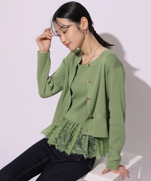 ふんわりと広がるペプラムレースがスタイリングのアクセントになるニットアンサンブル。凹凸のあるリブ素材は伸縮性があり、フィット感のある着心地を実現します。フロントの金釦がクラシカルな印象をプラス。セットで着用するのはもちろん、単品でも活躍してくれるアイテムです。【ご注意】※撮影照明の関係により、実際の商品と色味が異なって見える場合がございます。また、パソコン・スマートフォンなどの環境により、製品と画像のカラーが異なる場合もございます。予めご了承ください。※商品画像はサンプルのため、色味やサイズ等の仕様に変更がある場合がございますので、予めご了承ください。