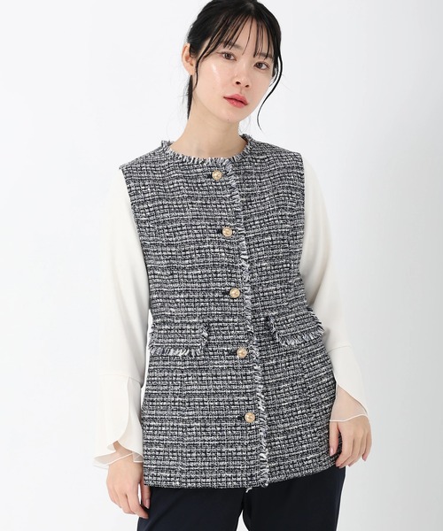 *ナチュラルファンシー表情豊かなナチュラルファンシーツイードを使用した、上品な佇まいのジレジャケット。素材感を活かしたシンプルなデザインで、STRAWBERRY-FIELDSらしい洗練さと女性らしさを演出します。さっと羽織るだけでコーディネートに奥行きと華やかさをプラス。ブラウスやニット、ワンピースとのレイヤードにも相性が良く、きれいめからカジュアルまで幅広く活躍する一着です。 洗濯:ドライクリーニング ●おすすめシーン セレモニー、2次会(二次会)、1.5次会などのお呼ばれや、成人式、同窓会、謝恩会、婚活、街コンなどのパーティーシーンはもちろん、 デートや女子会、七五三、お宮参り、誕生日会、入学式(入園式)、卒業式(卒園式)、演奏会、発表会などの学校行事での母親・ママスーツとしてなど。 20代・30代・40代・50代まで幅広いシーンで着回せます。 《お気に入り登録》はお得がいっぱい! 「商品」のお気に入り登録で、再入荷、ラスト1点、セールなどお得な通知を受け取ることができます。 「ブランド」のお気に入り登録で、新商品や再入荷などいち早くブランドの情報を受け取ることができます。 是非、この機会にご登録くださいませ。