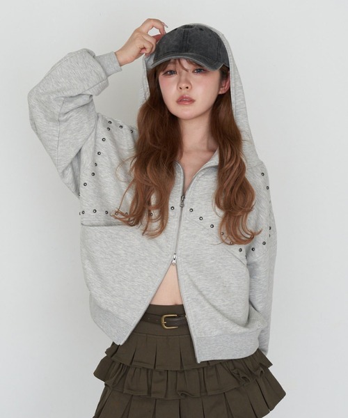 \今買って春まで着られる/スタッズがワンポイントのショート丈パーカーが登場ー 商品コメント ー・程よい厚みの生地感なので、春まで長く着ていただけます。・腰位のスッキリ丈なので、身長問わずスッキリ着られるのが嬉しいポイント◎・立体感のあるスタッズがワンポイントのアイテムです。ー スタイリングポイント ー・デニムと合わせたラフなスタイリング・ミニボトムと合わせれば、フェミニンな雰囲気で着ていただけます◎・同素材のスウェットとセットアップで着用いただけます。▶セットアップ対応アイテム【RCN1061102A0002】【セットアップで着られる】ロゴプリントルーズビッグスウェットパンツ▶プルオーバー派の方はこちら【RCN1061106A0004】【セットアップで着られる】ピグメントオフショルショートスウェットー 洗濯表示・お取り扱いについて ー洗濯:手洗い可(40度限度)タンブル乾燥:不可アイロン:110度まで※着用・お取り扱いの際は商品についている品質表示とアテンションタグを必ずご確認ください。【製品のご注意】・色落ちすることがありますので、他のものと分けて洗濯してください。・洗濯の際多少縮むことがあります。・汗や雨等で濡れた時や摩擦により、他の衣類や持ち物等(特に白)に色移りする可能性がございますので、十分ご注意ください。・この製品は、金属の付属品を使用しています。素肌に直接触れる場合、体質によっては、かゆみ、かぶれを生じることがあります。肌に異常を感じた場合、仕様を中止し専門医にご相談ください。・着用や洗濯を繰り返すことにより、付属品が破損することがあります。・この製品は、独特の風合いを出す為に、ピグメント加工を施しております。その為、1枚1枚の風合い、色の出方、サイズなど微妙に異なる仕上げとなっております。--------------------------------------------------------◆お気に入り登録について◆気になるアイテムは♡を押して、お気に入り登録がおすすめです。お気に入り登録をするとこんなメリットが!⇒商品のお気に入り登録商品の再入荷や、ラスト1点通知、お得なセール情報など特別な通知を受け取ることができます。⇒ブランドのお気に入り登録新商品や再入荷、クーポン配布などお得なブランドの情報をいち早くお知らせいたします。気になるアイテムを一覧で見ることができます。お買い物リストとしてぜひご利用下さい。--------------------------------------------------------〈 RAY CASSIN / レイカズン 〉Chicoの姉妹ブランドのRAY CASSINモードとストリートのファッションの中に感じる洗練さ。RAY CASSINは常に新しいものを求める方に向けたトレンドと自分らしさを表現できるブランドです。〈 Attention 〉〇商品について・商品画像はサンプル品を使用しているため、実際の商品と仕様、加工、サイズが若干異なる場合がございます。・商品の色味は、撮影場所や光のあたり具合などにより色味が違って見える場合がございます。 また、お客様のお使いのPCのモニター環境などにより色味が違って見える場合がございます。予めご了承ください。・キャンペーンやフェアにより価格が変動する場合がございます。・セールは予告なく終了させていただく場合もございます。〇返品・キャンセルについて・着用、洗濯後の返品、交換は致しかねます。・商品到着後、着用前に商品の状態を確認して頂きますようお願い致します。