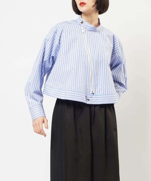 2026 SPRING&SUMMER COLLECTION ■design ・フロントに配したファスナーがデザインポイントとなり、開閉によって表情の変化を楽しめます。 ・コンパクトな着丈ながら、身幅と袖にゆとりを持たせた立体的なシルエット。 ・首元はすっきりとしたスタンドカラーで、シャープな印象に仕上げました。 ・コンパクトな丈感は足長効果◎ ・程よいハリ感のある素材で、着用時のフォルムを美しくキープします。 ■fabric ・100番手の双糸を平織にして作られたテキスタイル。 ・手触りが柔らかい中にハリがあり、光沢感があることが特徴。 ■coordinate ・ボリュームのあるパンツやスカートと合わせることで、バランスの取れたスタイリングに。 ・ファスナーを開けて軽い羽織としても着用でき、レイヤードスタイルにもおすすめです。 ‥‥‥‥‥‥‥‥‥‥‥‥‥‥‥‥ 厚さ:薄手 透け感:あり(ストライプのみ) 伸縮性:なし 光沢感:あり ポケット:なし 裏地:なし ※詳しいお手入れ方法は商品タグをご参照ください。 ‥‥‥‥‥‥‥‥‥‥‥‥‥‥‥‥ 《お知らせ》 ・商品画像はご覧のモニター環境により、実物の色味と多少異なる場合がございます。予めご了承ください。 ・「商品のお気に入り登録」で再入荷・値下げ・在庫1点などの通知を受け取ることができます。 ・「ブランドのお気に入り登録」で新商品や再入荷など、お得な情報を受け取ることができます。 ※他のキャンペーンにより、期間中に価格が変動する場合があります。 ※セールは予告なく終了させて頂く場合もあります。