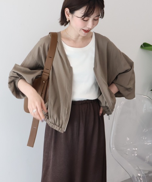紫外線対策もおしゃれも両立できる軽やかアウター 柔らかな素材感と美しい落ち感が特徴のブルゾン。 Vネックのすっきりしたラインが首元をきれいに見せ、ほどよく抜け感のある着こなしを楽しめます。 ドルマン仕様により締め付け感が少なく、リラックスした着心地です。 ファスナー付きで開け閉めしやすく、気温調整もしやすいのがうれしいポイント◎ UVカット機能が備わっているため、日常のお出かけや通勤、旅行などさまざまなシーンで活躍します。 軽く羽織るだけでコーディネートがまとまり、大人カジュアルな雰囲気を演出できます。 シンプルで合わせやすいデザインなので、季節の変わり目にも重宝する一枚です。 ■素材について ・UVカット 紫外線を通しにくくする加工を施しております。 ・接触冷感 接触冷感性のある素材を使用しているため、触れた瞬間ひんやり感じます。 透け感[なし] 生地の厚さ[薄手] 光沢感[ややあり] 伸縮性[なし] 裏地[なし] ポケット[あり] 【ご注意事項】 ※サンプルにて撮影を行っております。 ※実際にお届けする商品と仕様やサイズが異なる場合がございます。 ●AMERICAN HOLIC ● (アメリカンホリック) 大人の女性の毎日を軽やかで豊かにするブランド。 カジュアルなのにオシャレ、コーディネートも楽。ONにもOFFにも等身大で楽しむオトナの日常着をテーマに、スタイリッシュかつ自然体を楽しめるカジュアルスタイルを提案します。 ▼ 商品のお気に入り登録がおすすめです ▼ 商品ページ内のハートマークをクリック。完売時の再入荷や、最後の1点の通知、お得なお値下げの際の通知を受ける事ができます。 【お知らせ】ページでも通知が確認できます。