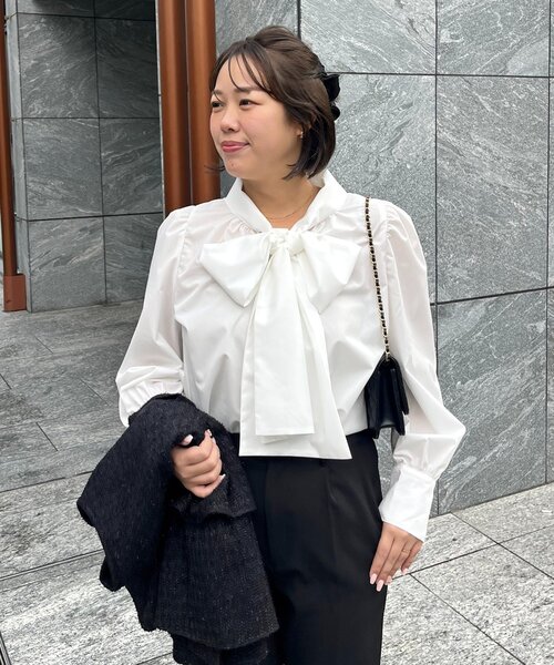 ママスタッフ"さーぽん"が企画したセレモニーアイテムが登場!●リアルママが監修したセレモニーアイテム!●顔周りに大きなリボンタイがくることで華やかに!●パフスリーブが女性らしくしてくれます!●ボリュームのある袖でベストやジレを着た時も可愛く◎●カフス部分のパールボタンが上品ポイントです●スカートやパンツ、ボトムスを選ばず幅広く着こなせますブラウス/リボン/セレモニー/きれいめ/フェミニン--------------------------------------------------------------生地の厚さ:普通伸縮性:なし透け感:ややあり裏地:なし洗濯方法:ご自宅で洗濯可--------------------------------------------------------------※商品画像はサンプルにて撮影をしておりますので、実際の商品とは色味や仕様・サイズ等が異なる場合がございますのであらかじめご了承ください。※商品のお取り扱いに関しましては、商品に付属のアテンションカード、洗濯ネームをご覧ください。※撮影場所やお使いのモニター環境により若干お色味が異なる場合がございます。特にロケの撮影では明るく見える傾向にございます。 ※サイト上ではフリーサイズの表記ですが、商品タグにはMサイズと表記されている場合がございます。その場合、ワンサイズでのご用意となりますのでサイズミスなどではございません。詳しいサイズはサイズスペックをご確認いただきますようお願い致します。※サイト上でのカラー名とお届けした商品に記載されているカラー名が異なる場合がございますので予めご了承ください。<返品・キャンセルについて>・着用・洗濯後の返品は致しかねます。・商品到着後、着用前に商品を確認して頂きますようお願い致します