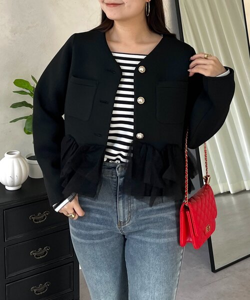 オンオフ着れる大人可愛いジャケット●セレモニーシーンにもぴったり◎●デニムなどを合わせれば普段コーデにも●もちっとした生地感で着心地抜群●パールボタンがアクセントにジャケット/きれいめ/大人可愛い--------------------------------------------------------------生地の厚さ:普通伸縮性:ややあり透け感:なし裏地:なし洗濯方法:ご自宅で手洗い可--------------------------------------------------------------※商品画像はサンプルにて撮影をしておりますので、実際の商品とは色味や仕様・サイズ等が異なる場合がございますのであらかじめご了承ください。※商品のお取り扱いに関しましては、商品に付属のアテンションカード、洗濯ネームをご覧ください。※撮影場所やお使いのモニター環境により若干お色味が異なる場合がございます。特にロケの撮影では明るく見える傾向にございます。 ※サイト上ではフリーサイズの表記ですが、商品タグにはMサイズと表記されている場合がございます。その場合、ワンサイズでのご用意となりますのでサイズミスなどではございません。詳しいサイズはサイズスペックをご確認いただきますようお願い致します。※サイト上でのカラー名とお届けした商品に記載されているカラー名が異なる場合がございますので予めご了承ください。<返品・キャンセルについて>・着用・洗濯後の返品は致しかねます。・商品到着後、着用前に商品を確認して頂きますようお願い致します手洗い可