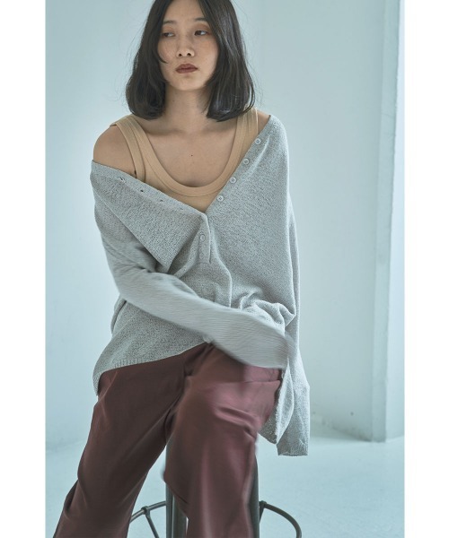 季節の変わり目に寄り添う、軽やかな存在感。 春先や秋口の「何を着たらいいか迷う時期」にぴったりな1枚です。 少し肌寒い時は中に長袖を。Tシャツやヒートインナーを着るのもOK。 とても軽くストレスフリーな着心地で夏場の冷房対策として持ち歩くのにも重宝します。 ボタンを胸元に置いたヘンリーネックデザイン。 くび元に透け感を出してくれ長袖でも重たい印象を与えず、コーディネートに軽やかな「抜け」を作ってくれます。 高身長さんにも嬉しい、贅沢なサイズ設計で「袖丈が足りない」「着丈が短くてバランスが取りにくい」といった悩みを解消するゆとりを持たせた設計です。 気になる腰回りやヒップラインをさりげなくカバーしつつ、大人の余裕を感じさせるようなスタイルカバーを叶えます。 [着用時期]3〜9月(約20℃以上) [透け感]若干あり※インナー必須 [生地の厚み]薄手 [ストレッチ]あり [生地のやわらかさ]柔らかい、チクチク、シャリ感なし [生地の特徴]かなりストレッチの効いたサマーニット素材 [落ち感]あり [着用ジワ]なりにくい [ポケット]無 [身長]全ての方に(身長によって着丈が変わります) ※感じ方には個人差がございますので気になる部分がありましたらお気軽にお問い合わせください