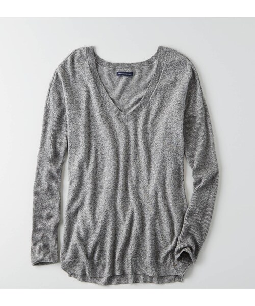 ゆるっと着られるドロップショルダー。 リブ袖がアクセント。 コットン55%、ポリエステル20%、アクリル15%、レーヨン10% 、ソフトなブレンドニット、ドレープ感のあるイージーなフィット、Vネック、袖はリブ、後ろ丈長め お手入方法:洗濯機洗い
