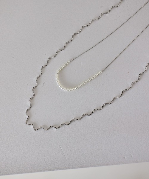 これ一つで華やかにパールの艶が引き立つ2連ネックレス表情豊かなウェーブチェーンと、上品なパールを組み合わせた贅沢な2連デザインのネックレスです。程よいボリューム感が胸元に奥行きを与え、シンプルなスタイリングをぐっと華やかに格上げします。普段使いはもちろん、卒業式や入学式などのオケージョンシーンまで万能に活躍するアイテムです。ーーーアクセサリー ネックレス パール オケージョン セレモニー 入学式 卒業式ーーー