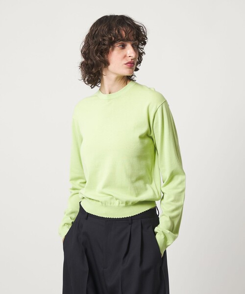 コットン糸で編み立てたさらりとしたタッチのハイゲージ クルーネックニット。シンプルなボディに、ネック、裾、袖口部分のピコットがさりげなくガーリーな印象を演出します。シックでモードな印象のグレーと着こなしに鮮度を加えるライムカラーのバリエーション。一枚着からジャケットなどのインにも合わせやすく、長いシーズンで重宝する一枚です。・同素材でVネックもご用意しています。(対象品番:86131000013)============================裏地:なし透け感:なし伸縮:ややあり光沢感:なし============================【注意事項】※商品に「取り扱い上の注意書き」、「洗濯表示」がございます場合は、使用前に必ずご確認ください。※商品画像は、光の当たり具合やパソコンなどの閲覧環境により、実際の色味と異なって見える場合がございます。あらかじめご了承ください。※商品の色味の目安は、商品単体の画像をご参照ください。店舗へお問い合わせの際は、全国の6(ROKU)各店舗まで下記の品名/品番をお申し付けください。品名:□6 CTN PICOT CN** 品番:86131000012