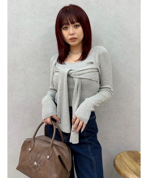 ハイゲージ編みで仕上げた、なめらかな肌触りのニット。胸元にあしらった同素材のリボンデザインが印象的でシンプルながらも目をひく1枚です。程よいフィット感とベーシックなシルエットでデニムからスカートまで幅広くコーディネート可能。ジャケットのインにも収まりやすく、ロングシーズン活躍します。