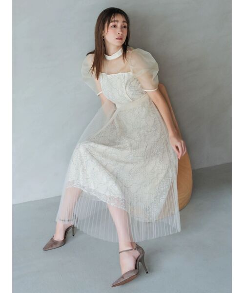 藤井サチ×dazzlin(ダズリン) collaboration ITEM 【商品】繊細なレースに、ふんわりと揺れるチュールプリーツを重ねたレイヤードデザインが印象的なドレス。 歩くたびに揺れるプリーツが、女性らしさと上品さを引き立てます。 ウエストはすっきりとした切り替えで、スタイルアップ効果も◎。 袖はほんのりシアーで軽やかさをプラスし、オケージョンやパーティーにぴったりな華やかさを演出します。【スタイリング】ボレロやショートカーデを合わせて、柔らかい雰囲気に。アウターはロングコートをさらっと羽織り、ドレスのレイヤードを見せて立体感を演出。【 お買いものにおすすめの便利機能! 】★商品のお気に入り登録完売カラーの再入荷時や、ラスト1点の時、セール開始時にお知らせします。★ブランドのお気に入り登録新商品や再入荷、セール情報など、いち早くブランドのお得な情報を受け取ることができます。ぜひご活用ください。