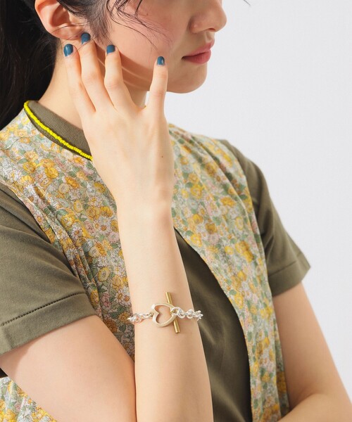 ハートモチーフが心をくすぐる■デザイントグルブレスレットの定番である丸い輪の代わりに、ハートモチーフを採用した遊び心のあるデザイン。留め具としての役割だけでなく、手元のアクセントとしても存在感を放ちます。ハート部分にはさりげなく〈BEAMS BOY(ビームスボーイ)〉のネームを刻印し、特別感をプラス。ハートモチーフだけポイントになるよう、ゴールドを効かせたことでより存在感のあるブレスレットに仕上がりました。カラー違いで【品番:13-42-1591-248】 のご用意もございます。■コーディネートシンプルな装いのポイント使いはもちろん、他のブレスレットとの重ね付けにもおすすめ。甘さを抑えたモチーフ使いで、カジュアルからトラッドまで幅広いスタイリングに馴染みます。【アクセサリー・小物雑貨の取り扱いについて】・貴金属は、体質により、かゆみやかぶれを生じる場合があります。・皮膚に異常を感じた場合は直ちにご使用を止め、専門医にご相談下さい。・家事やスポーツ、就寝時や乳幼児の世話をする時などは、身体に危害を及ぼす場合がありますので着用を避けて下さい。・熱伝導が高いので、高温の場所や寒冷地での着用は火傷や凍傷の原因となりますので着用を避けて下さい。・乳幼児が誤飲しないように、保管は十分にご注意下さい。