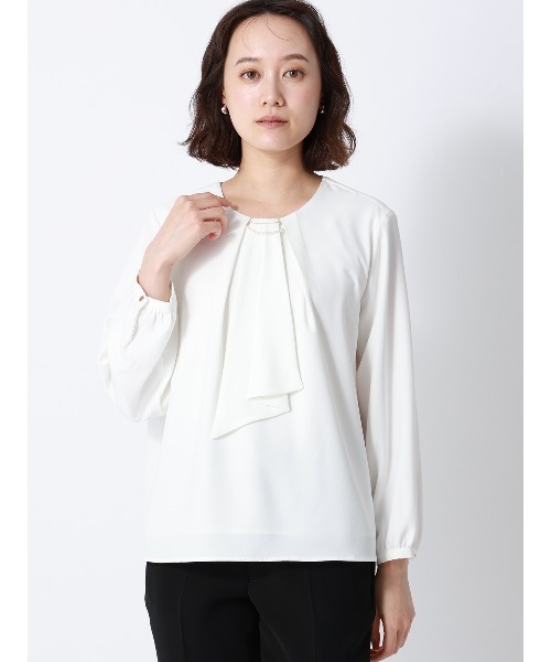 【機能】 ウォッシャブル/汚れてもご家庭で簡単にお洗濯が可能です。 NIR Care(エヌアイアールケア)/肌に悪影響を及ぼす近赤外線を吸収・遮蔽する素材。レアメタルを配合した糸を使用することで、近赤外線から肌を守ります。さらに紫外線防止効果も併せ持つ高機能素材です。 【仕様】ラウンドネック/長袖 【洗濯表示】洗濯機可(ネット使用・弱水流) ーーーーーーーーーーーーーーーーーーーーーーーーーーーー 【スタッフ着用コメント】 ①女性スタッフ 身長:157cm ・着用サイズ 38 ・着用感 胸元のチャームとボウタイはひとつずつ取り外せるという優れもの!! デザインにアクセントが欲しい時、アクセサリーをするからシンプルにしたい日などその日によって使い分け自由自在🙆♀️ ーーーーーーーーーーーーーーーーーーーーーーーーーーーー 【おすすめシーン】 食事会、お呼ばれ、デート、パーティー、女子会 オフィスカジュアル、ビジネス、仕事、通勤 結婚式、披露宴、セレモニー、2次会、1.5次会 成人式、同窓会、謝恩会、婚活、街コン 七五三、お宮参り、誕生日会、入学式(入園式)、卒業式(卒園式) 演奏会、発表会、参観日などの学校行事 ※洗濯の際は、メタルパーツを取り外してください。 ※こちらの商品は素材・染色の特性上、着用中の摩擦や洗濯で色落ちする場合がございます。予めご了承下さいませ。 ※同サイズまたは同一商品でも、生産の過程で1.0cm~2.0cm程度の個体差や着用感の違いが生じる場合がございます。 ※カラー名は管理用の表記となります。実際の商品の色味は商品画像をご確認ください。 ※商品画像はできる限り実際の色に近づけて掲載しておりますが、パソコン環境により色味に誤差が生じる場合がございます。予めご了承下さいませ。