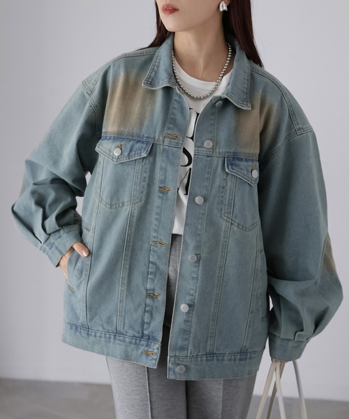 【Riberry ヴィンテージライクオーバーサイズデニムジャケット】 \同素材パンツとのセットアップもおすすめ/ 羽織るだけでサマになる、ヴィンテージライクデニムジャケット♪ ■Styling ヴィンテージライクな風合いが目を惹く、こなれ感たっぷりのデニムジャケットが登場しました。 長年着込んだかのような色落ち加工と、随所に施されたウォッシュ感が、羽織るだけでスタイリングに奥行きをプラスしてくれます。 シルエットはトレンド感のあるオーバーサイズ。 肩を落としたドロップショルダーと、身幅にゆとりを持たせた設計で、インナーを選ばずラフに着用可能です♪ フロントは定番のボタン仕様に、胸元のフラップポケットや切り替えステッチなど、デニムジャケットらしい王道ディティールをしっかりと踏襲。 ヴィンテージ感を演出する色ムラ加工がありながらも、全体のバランスは計算されており、カジュアルになりすぎないのもポイントです。 同デザインの【RS2862】デニムパンツと合わせれば、セットアップとしての着用も可能。 インナーはロゴTやシンプルなカットソーを合わせるだけで、簡単に今年らしいスタイリングが完成します。 単品使いなら、ワンピースやスカートと合わせたミックスコーデや、スラックスと合わせた大人カジュアルスタイルもおすすめ◎ 一枚あるだけで着こなしの幅が広がる、主役級ヴィンテージライクデニムジャケット。 トレンドと定番を兼ね備えた、長く愛用したくなるアイテムです! ■Detail ゆとりのある身幅とヴィンテージライク加工がこなれ感のある一枚。 定番のデニムジャケットですが、今年らしいトレンドが詰まったオシャレアイテムです。 オーバーなサイジングで、寒い時期には厚手のインナーも着込めます! 胸ポケットあり。 ■Material 綿とポリエステルの混紡素材を使用。 綿のナチュラルな風合いと、ポリエステルの軽さ・扱いやすさを兼ね備え、デニム特有の硬さを抑えた着心地の良さが魅力。 柔らかく肌馴染みも良い厚手すぎない生地感なので、季節の変わり目には軽アウターとして、寒い時期にはコートのインにも活躍します! ▽生地感 透け感:あり 〇〇〇〇● なし 生地の厚さ:厚い ○○●〇〇 薄い 裏地:なし 伸縮性:なし ※この素材は摩擦(特に湿った状態での摩擦)や雨、汗でぬれた際には他の衣料等に色が移ることがございますのでご注意ください。 ※お肌のデリケートな方は刺激を感じる場合がございます。 ※通販の特性上、到着時に畳みシワがついている場合がございます。予めご了承ください。 ※詳しいお手入れ方法は商品タグをご参照ください。 【Information】 ◆《お気に入り登録》がオススメ◆ ・「商品のお気に入り登録」で再入荷通知や、ラストの通知、セール通知も受け取ることが出来ます。 ・「ブランドのお気に入り登録」で新商品や再入荷など、お得な情報を受け取ることが出来ます ※撮影時のライティング、ご覧になっているモニター・PC環境により、実際の商品と色味が異なって見える場合がございます。予めご了承をお願い致します。