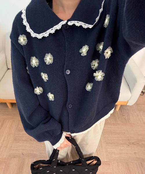 【kutir ladies/クティールレディース】新作情報はInstagram公式アカウントからチェック!↓【@kutir_ladies】-------------------------------------------------------アイテム説明-【フロントに花モチーフを施したレトロ風カーデ】3D見えするフラワーモチーフが目を引くカーディガン。丸襟の裾にはレースがついており、ほっこりとしたデザインがレトロ見えする1着♪-コーディネート‐スカート合わせやワンピースの上からレイヤードしたりとカジュアルに着用していただけます。小物はムートンブーツやバラクラバがおすすめ!------------------------------------------------------透け感:なし裏地:なし伸縮性:あり光沢感:なし生地の厚さ:普通-------------------------------------------------------スタッフ着用コメント-身長:155cm/体型:普通/普段サイズ:Mサイズ/着用サイズ:Fサイズサイズ感:ゆったりとしたサイズ感素材感:チクチクしない一般的なニット地着心地:ストレスフリーに着用していただけます-kutirブランドコンセプト-"トレンド×kutir original"サイズやカラー豊富に展開中!古着らしさにトレンドを取り入れた new style(WEB限定)※サイト上のカラー名と、お届け商品に記載されているカラー名が異なる場合がございます。※ご覧いただく環境により、実物と色味が異なって見える場合がございます。ご了承ください。【お買い物をよりお楽しみいただくために】▼商品のお気に入り登録(ハートマークをクリック)完売カラーの再入荷通知や、ラスト1点の通知、セールの通知も受けることができます。▼ブランドのお気に入り登録新商品や再入荷など、いち早くブランドのお得な情報を受け取ることができます。