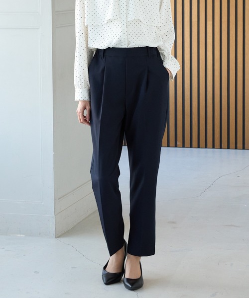 大人気!きれい魅せ『美ージー』シリーズ♪ 【デザイン】 もっと短い丈が欲しいとのご要望に応えた、股下60cmタイプ。 ファスナーやボタンのない、すっきりとしたデザイン。 きちんと感のあるセンタープレスと、腰回りのラインにこだわった、裾に向かって細くなる美しいシルエットで美脚効果も抜群。 【素材・機能】 環境に優しい再生ポリエステルを使用した、『ストレッチ』の利いたツイル素材とウエストゴムでストレスフリーなはき心地。 洗濯機で洗える『マシンウォッシャブル』と、シワになりにくい『イージーケア』の機能付き。 便利な両サイドポケット付き。 【スタイル】 ブラウスと合わせたきれいめスタイルから、Tシャツと合わせたカジュアルスタイルまで、幅広い着回しに毎日大活躍。 自分にぴったりが見つかる、股下4レングス×豊富なサイズ展開! ・股下60cm(品番:573-73-1065) ・股下63cm(品番:573-73-1066) ・股下66cm(品番:573-73-1067) ・股下69cm(品番:573-73-1129)WEB限定 ※時期により未販売の場合がございます。 ※ウエスト部分ゴム●裏地/アイボリーのみあり ※前開き・後ポケットみせかけ 品番:573-73-1065