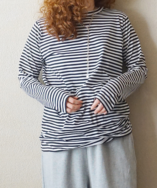 【2025AW】journal standard luxeコットン100%の毛羽の少ないコンパクト糸をハイゲージに編み、クリアな表面と、綿本来の光沢が有り、滑らかな肌触りの天竺ボーダーです。セットインスリーブで程よいゆとりのある、ベーシックなクルーネックプルオーバーです。ブラック・ブラウン 2色展開。 FREEサイズ※取り扱いについては、商品についている品質表示でご確認ください。※照明の関係により、実際よりも色味が違って見える場合があります。またパソコン・スマートフォンなどの環境により、若干製品と画像のカラーが異なる場合もございます。※商品の色味は、商品アップ画像をご参照ください。モデルサイズ:身長:163cm 着用サイズ:フリー本体:手洗い可能