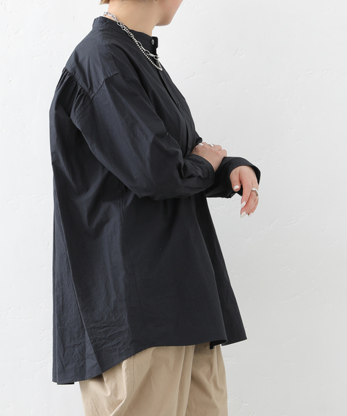 【2026SS】journal standard luxeコットン100%の60番手糸を使用した、程よい厚みで表情感のあるワッシャー仕上げのタイプライター素材です。ドロップショルダーでゆったりした着心地のスタンドカラーシャツ。メンズライクな中にもソフトさをMIXさせた、後ろヨーク下のギャザーがポイントです。ブラック・ホワイト・サックスブルー 3色展開。 FREEサイズ※取り扱いについては、商品についている品質表示でご確認ください。※照明の関係により、実際よりも色味が違って見える場合があります。またパソコン・スマートフォンなどの環境により、若干製品と画像のカラーが異なる場合もございます。※商品の色味は、商品アップ画像をご参照ください。モデルサイズ:身長:163cm 着用サイズ:フリー本体:手洗い可能
