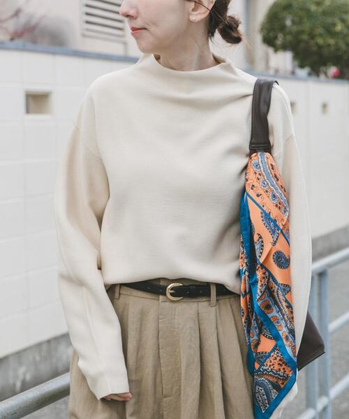 シンプルに映える、洗練ボトルネック 首元に絶妙な高さを持たせたボトルネックデザインが、大人の女性らしさを演出するニット。肩のラインを少し落としたドロップショルダーが、程よい抜け感とリラックスした空気感をプラス。身体のラインを拾いすぎない柔らかなシルエットながら、袖口の長めのリブが手元をキュッと引き締め、メリハリのある着こなしを叶えます。清潔感とやさしさを併せ持つカラーは、春のスタイリングに軽やかさをプラス。細やかで滑らかな編み地は肌当たりも良く、ジャケットやコートのインナーとしても、一枚着としても主役になるクオリティです。トレンドに左右されず、長く愛用できる究極のベーシックな一着です。 【楽着シリーズ】 「あなたのお悩み、一件楽着」をコンセプトに、季節の端境期における衣服選びの難しさや、特定の着用シーンでの不満を機能性素材によって解消。 【2026 Spring/Summer】【26SS】 総重量 : 約405g ※商品画像は、光の当たり具合やパソコンなどの閲覧環境により、実際の色味と異なって見える場合がございます。予めご了承ください。 ※商品の色味の目安は、商品単体の画像をご参照ください。 ▼お気に入り登録のおすすめ▼ お気に入り登録された商品は、マイページにて現在の価格情報や在庫状況の確認が可能です。 お買い物リストの管理にぜひご利用ください。 素材感 透け感 : なし 伸縮性 : あり 裏地 : なし 光沢 : なし ポケット : なし Free